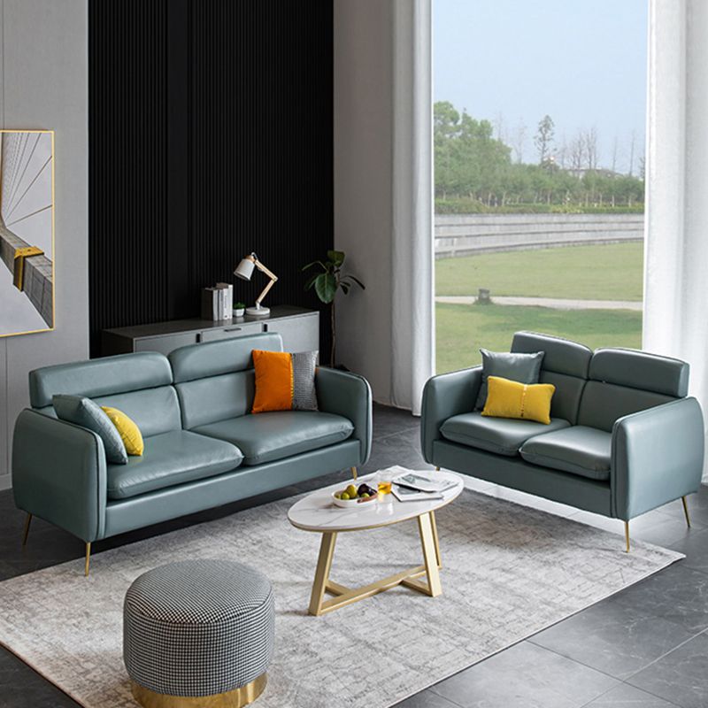 Faux Leather Modern Square Arm Sofa Standard Sofa with Sewn Pillow Back