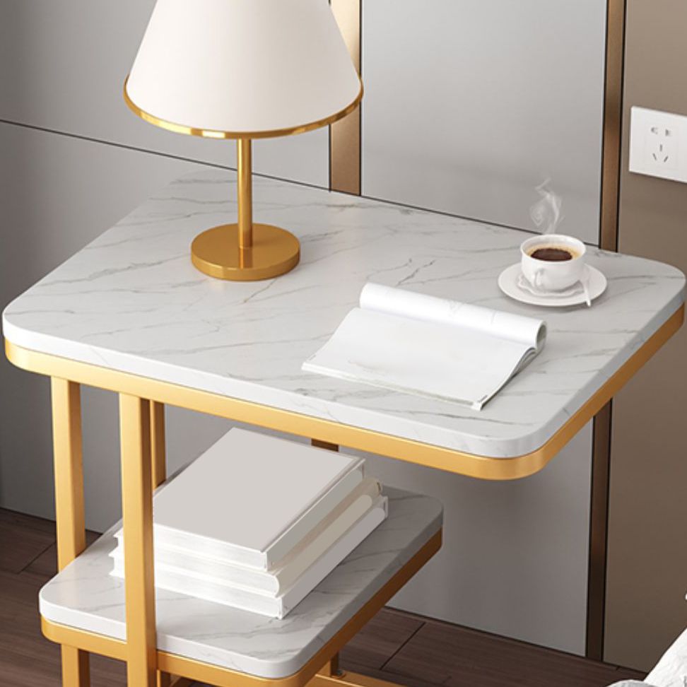 Glam Bedside Cabinet Antique Finish Bed Nightstand with 2 Shelves