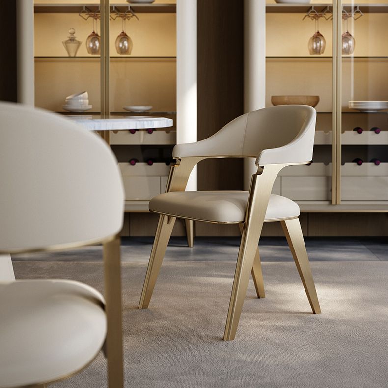 Glam Kitchen Side Chair Metal Legs Open Back Dining Arm Chair