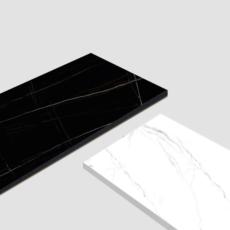 Glam Stone Dining Table Rectangle Iron Table with Double Pedestal Table
