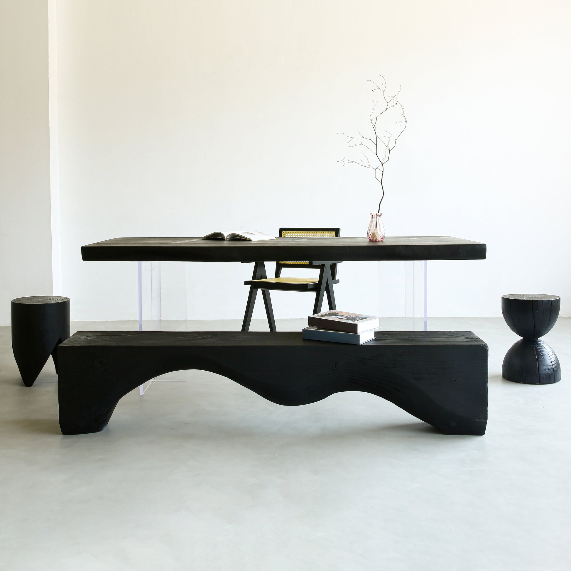Irregular Dining Table Contemporary Style Solid Wood Black Dinner Table