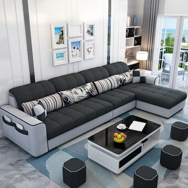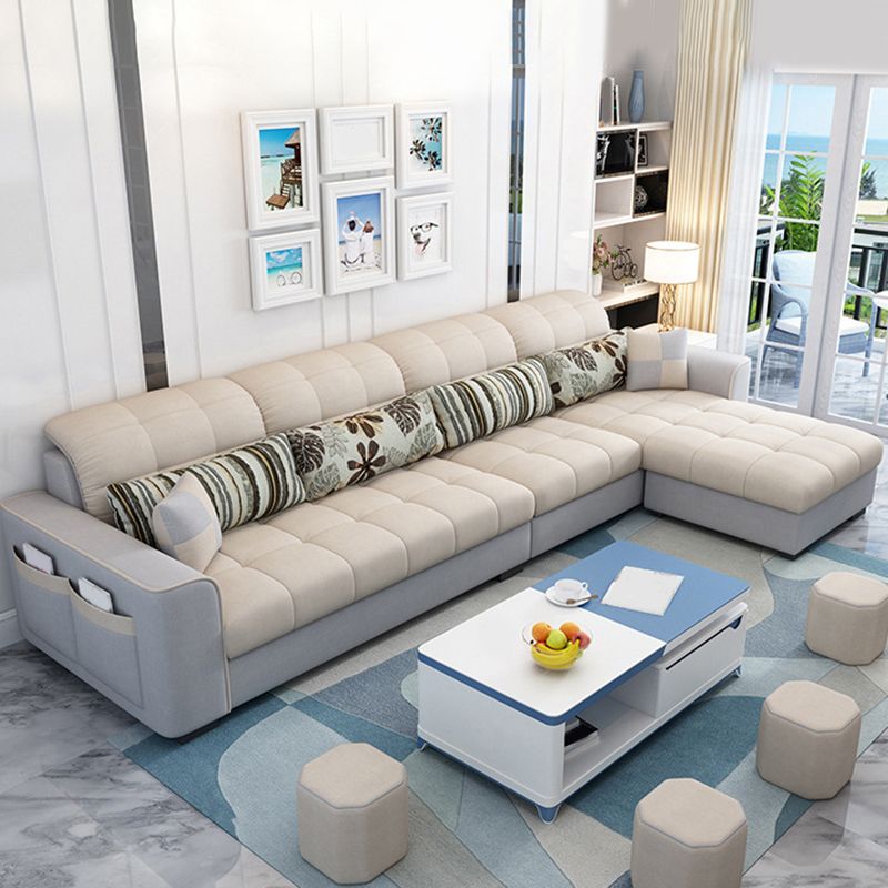 Linen Sewn Pillow Back Sofa & Chaise, 106.3" W x 57.09" D x 31.5" H
