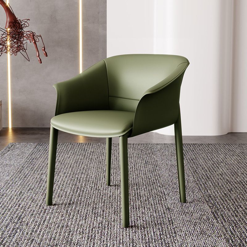 Matte Finish Contemporary Indoor Side Chair Faux Leather Solid Back Dining Arm Chair