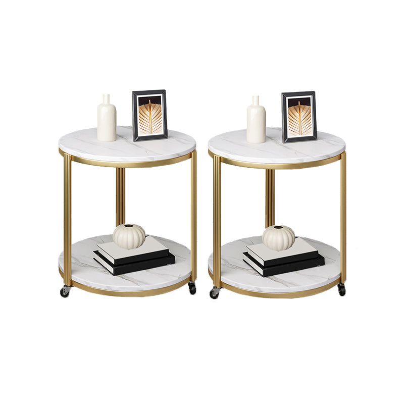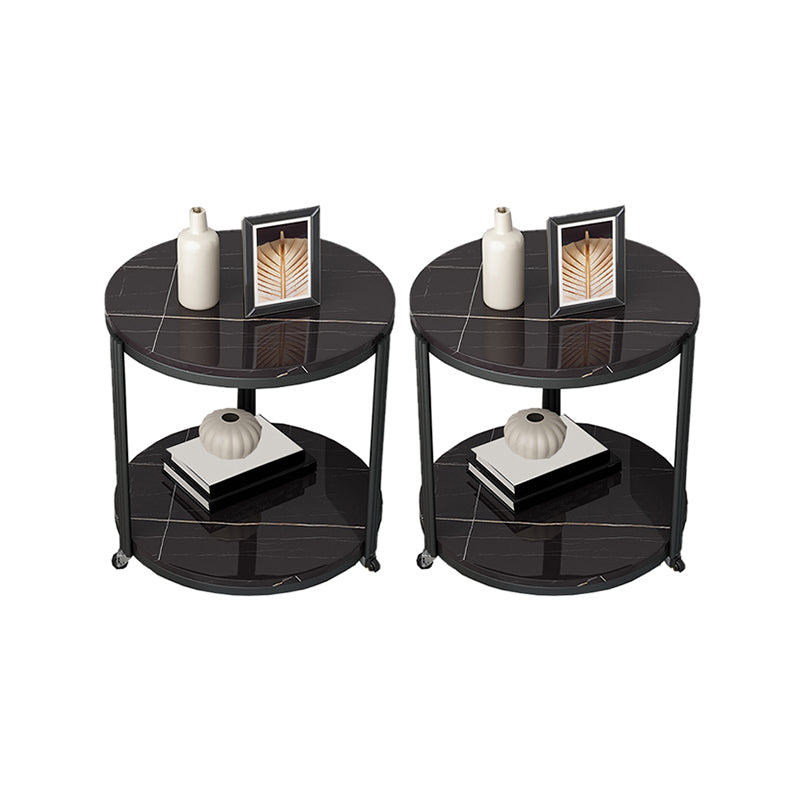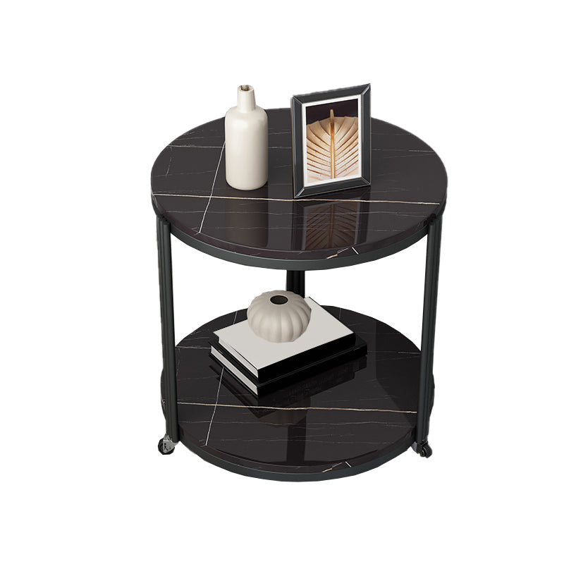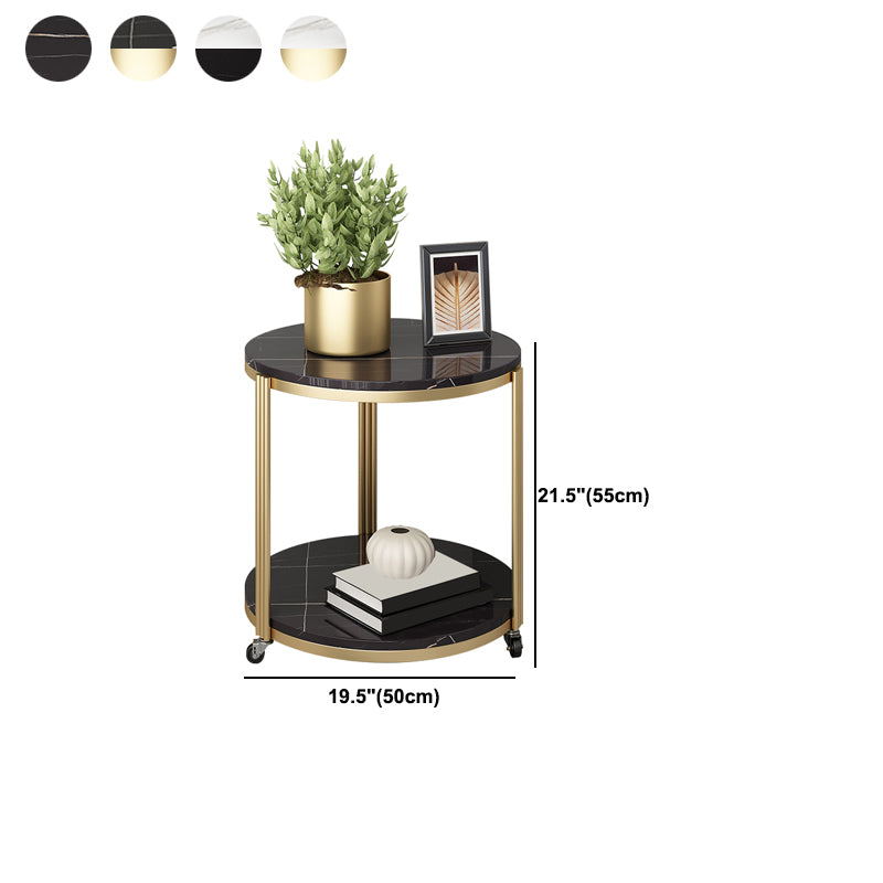 Modern 21.6" Tall Slate Round Side Table Metal Frame End Table with Shelf