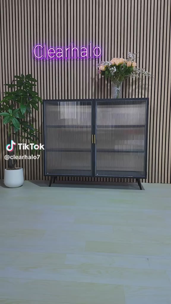 Rectangle Metal Storage Sideboard Contemporary Side Board with Glass Door