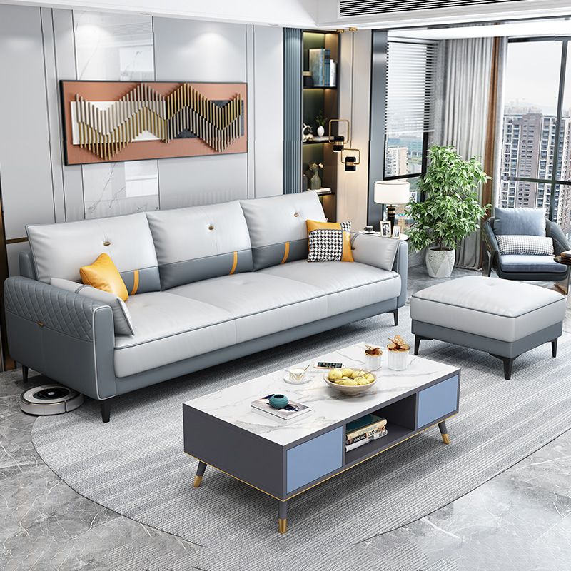 Scandinavian 3-seater Sofa with Ottoman Included Square Arm Sofa