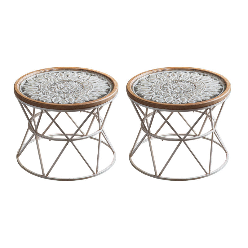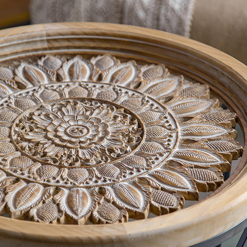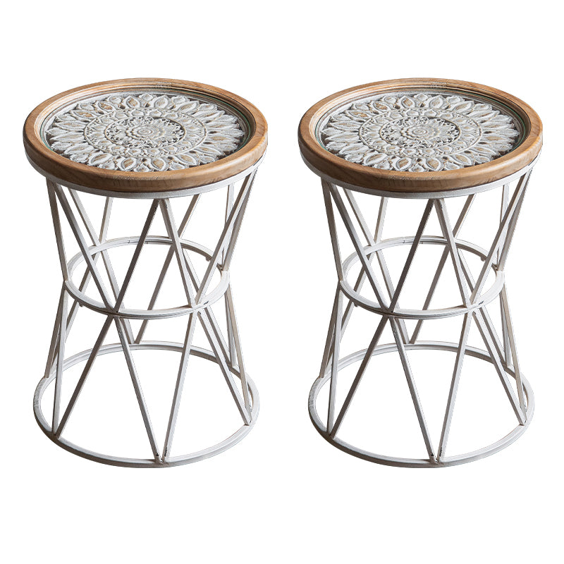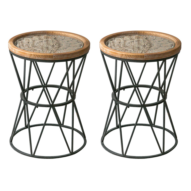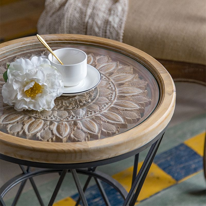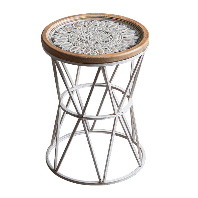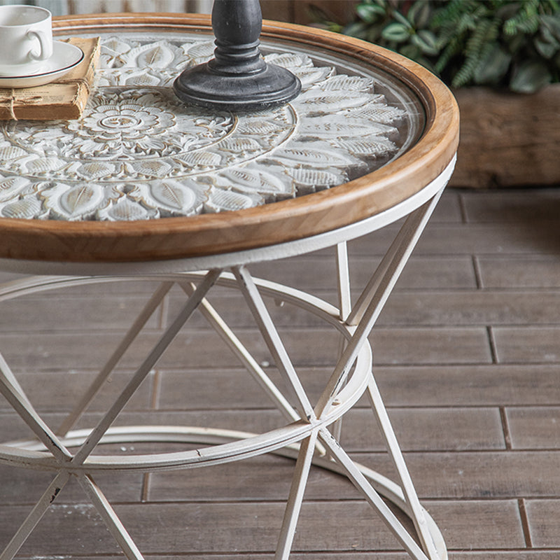 Solid Wood French Country Frame Side Table Antique Brown End Table