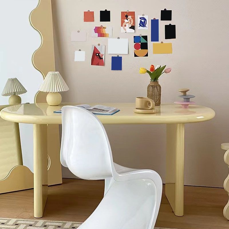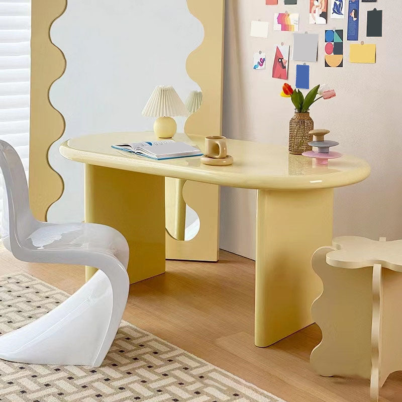 Solid Wood Oval Writing Desk Sled Base 29.53" Tall Office Desk