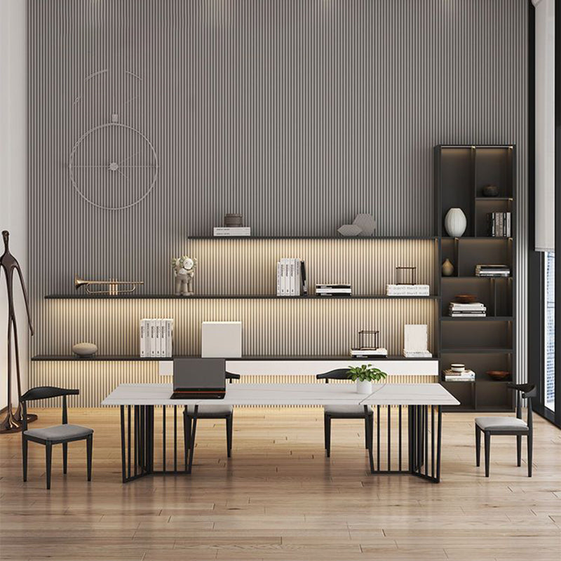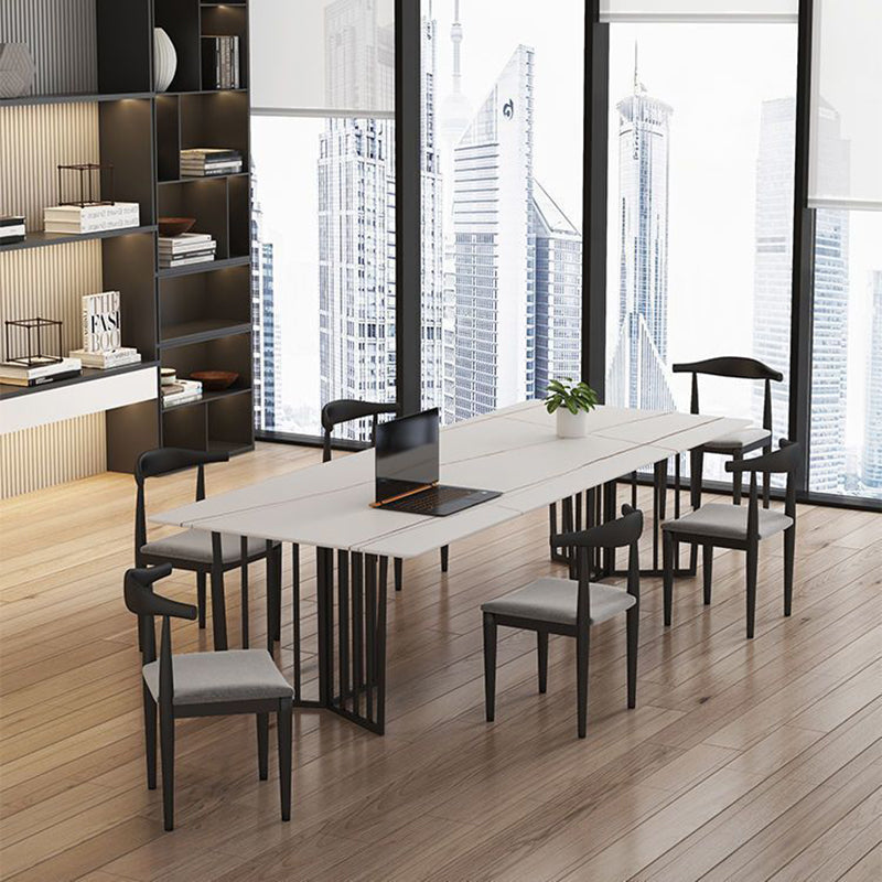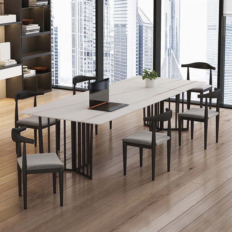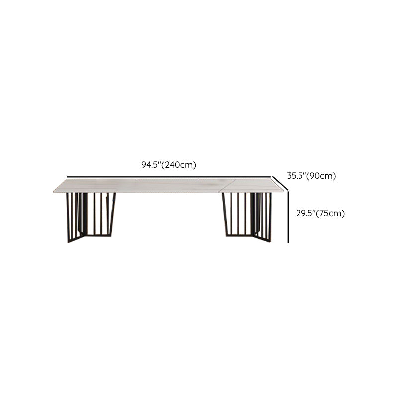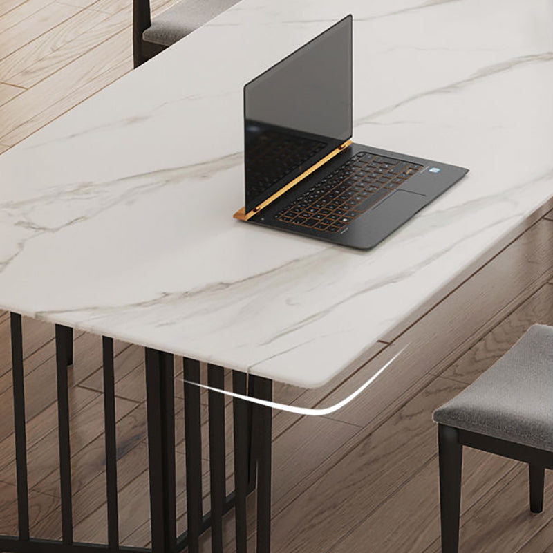 Stone Rectangular Office Desk 29.53" Tall White Writing Desk with Iron Legs