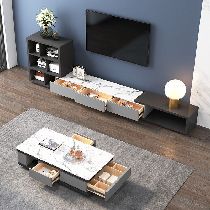 White Contemporary Marble Top Coffee Cocktail Table with Storage
