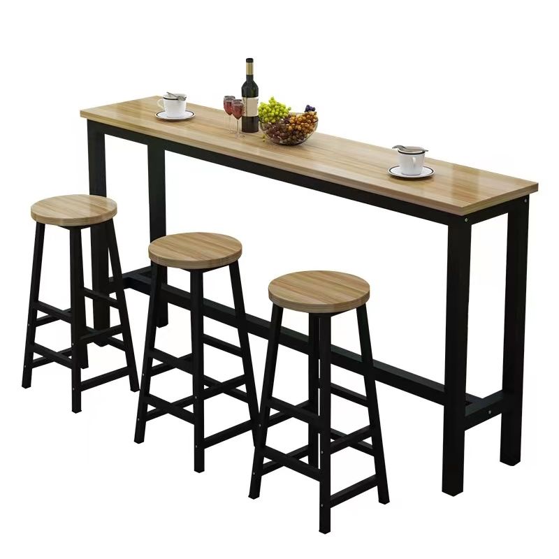 Wood Bar Dining Table Traditional Luxury Rectangle Bar Table with Black Trestle Base