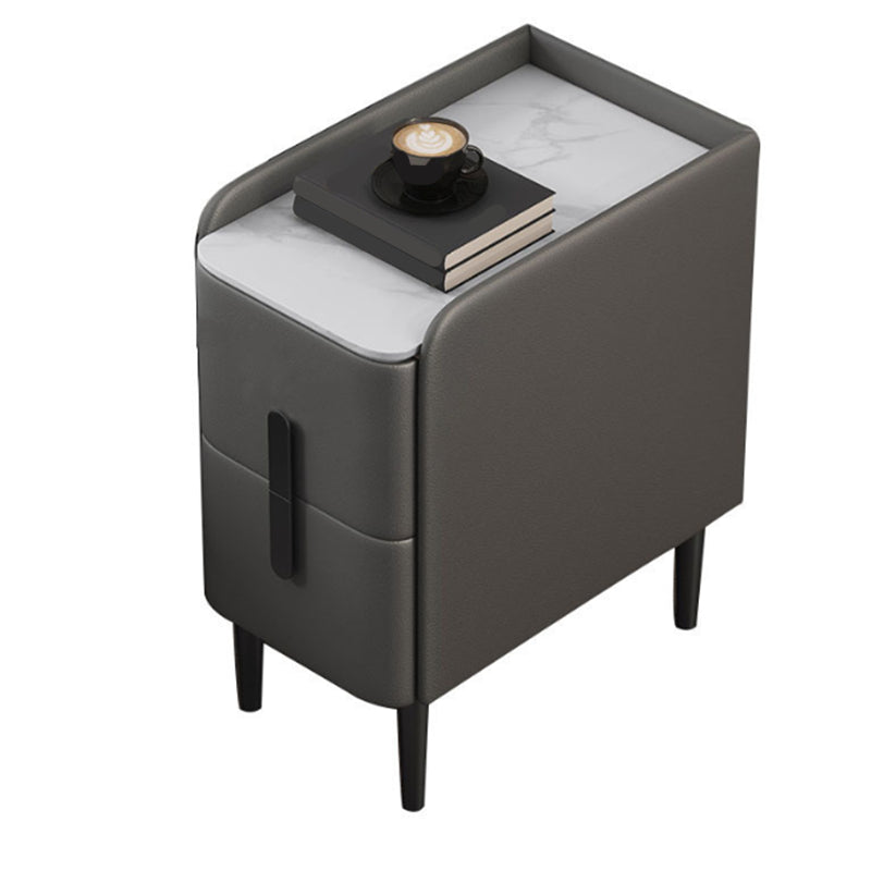 Wood Night Stand with Drawers 20" Tall Bed Nightstand in White/Gray