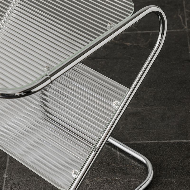 24" Tall Square Glass Top Side Table Iron Abstract Base End Table