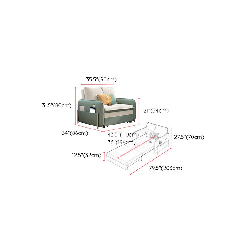 33"H Glam Futon Sofa Bed Futon White Cushion Back Sleeper Sofa with Storage