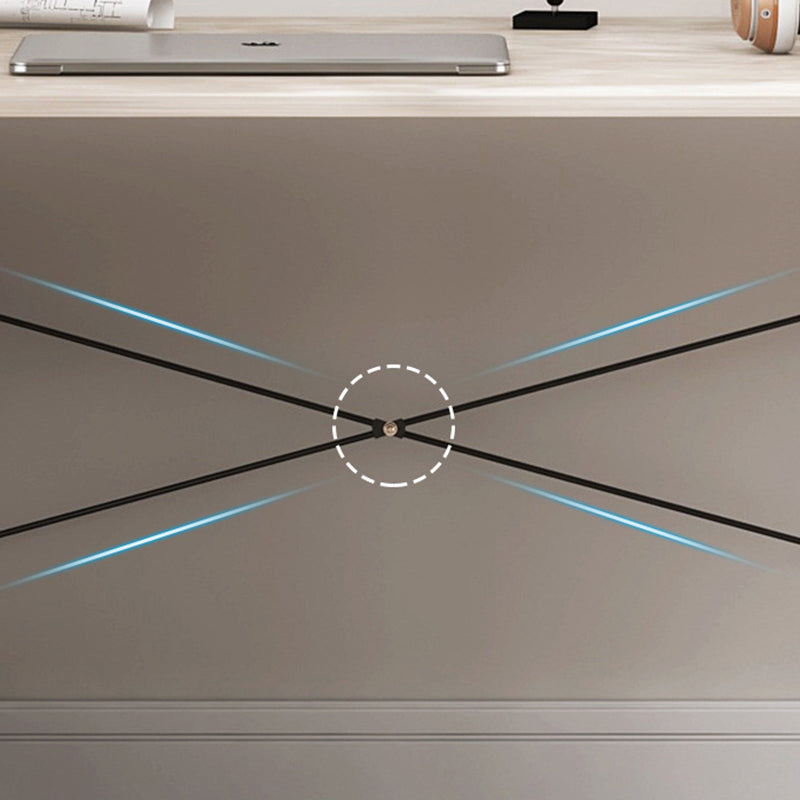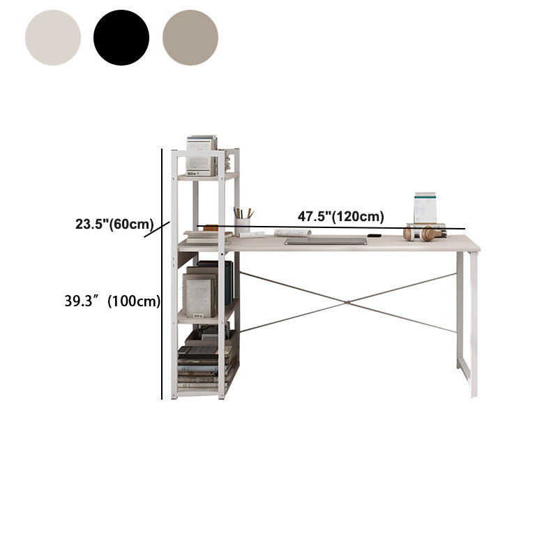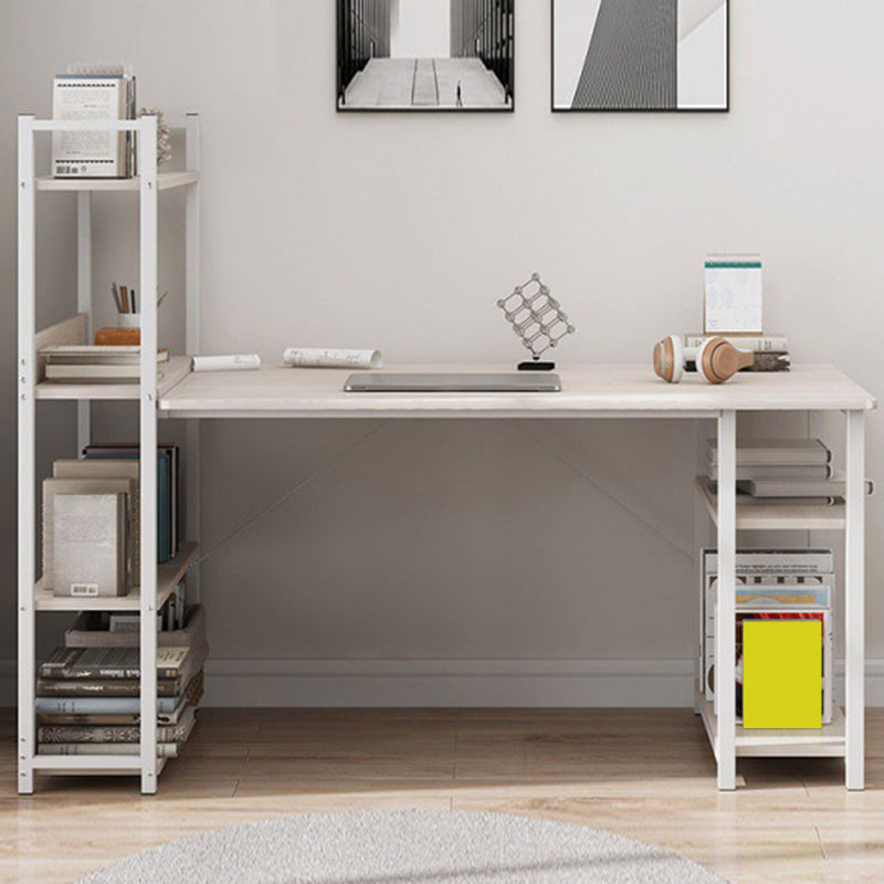 Contemporary Engineered Wood Office Desk H-Shape Base Writing Desk with Shelf for Home