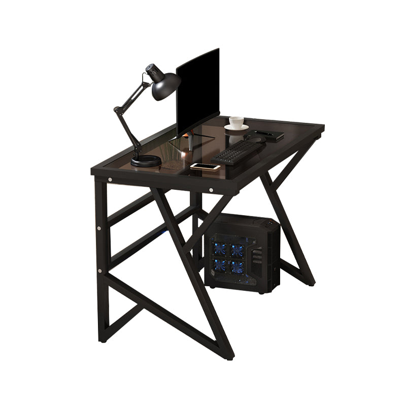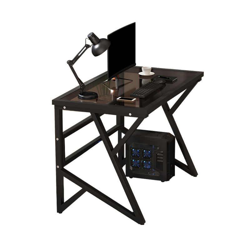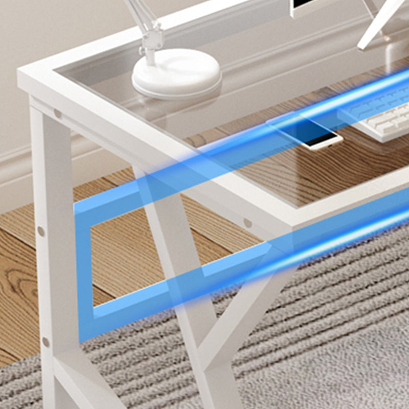 Contemporary Glass Top Writing Desk 29.53" Tall Rectangular Office Desk