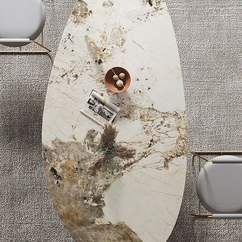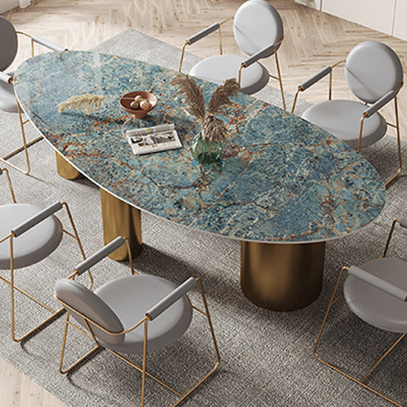 Contemporary Oval Dining Table Stainless Steel Base Pedestal Table for Dining Room