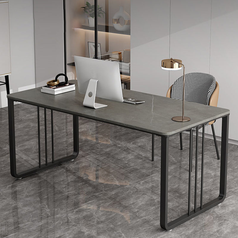 Contemporary Rectangle Writing Desk Antique Finish Office Desk with Metal Legs