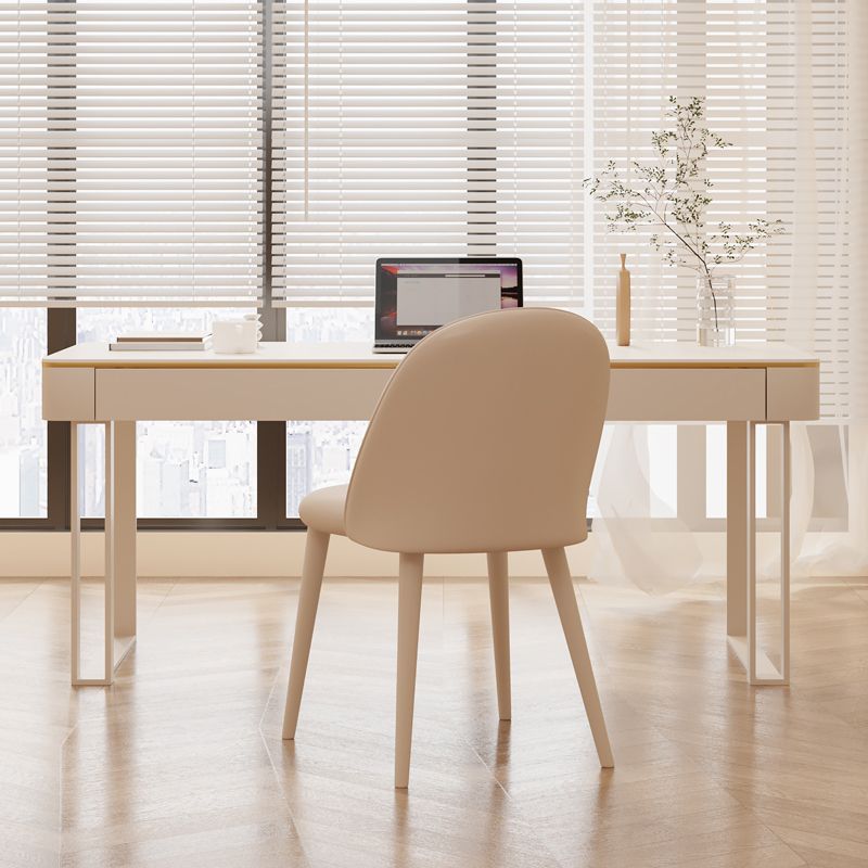 Contemporary Rectangular White Office Desk Iron Base Writing Desk for Home