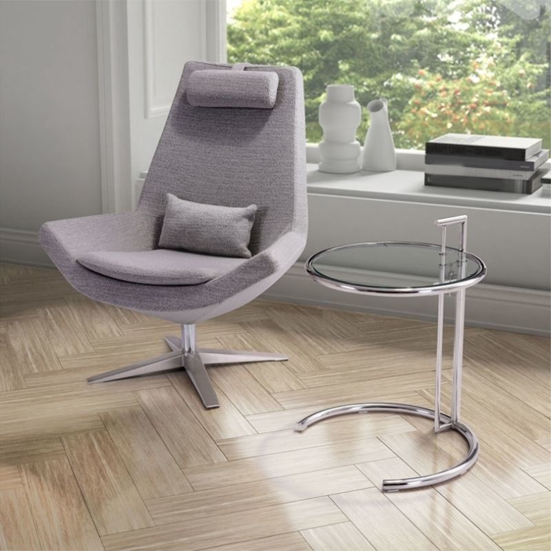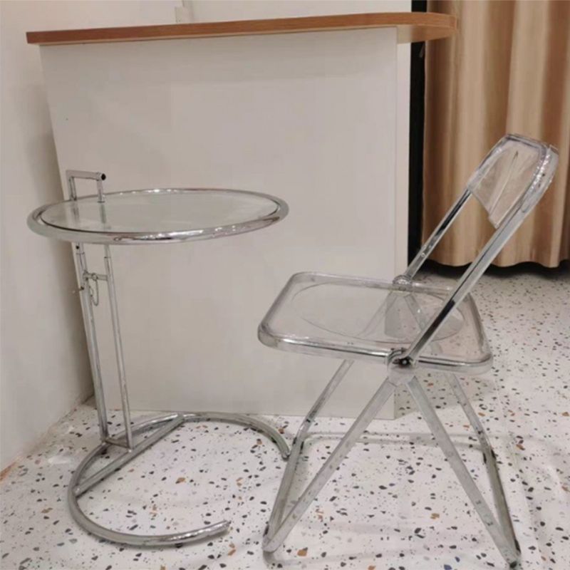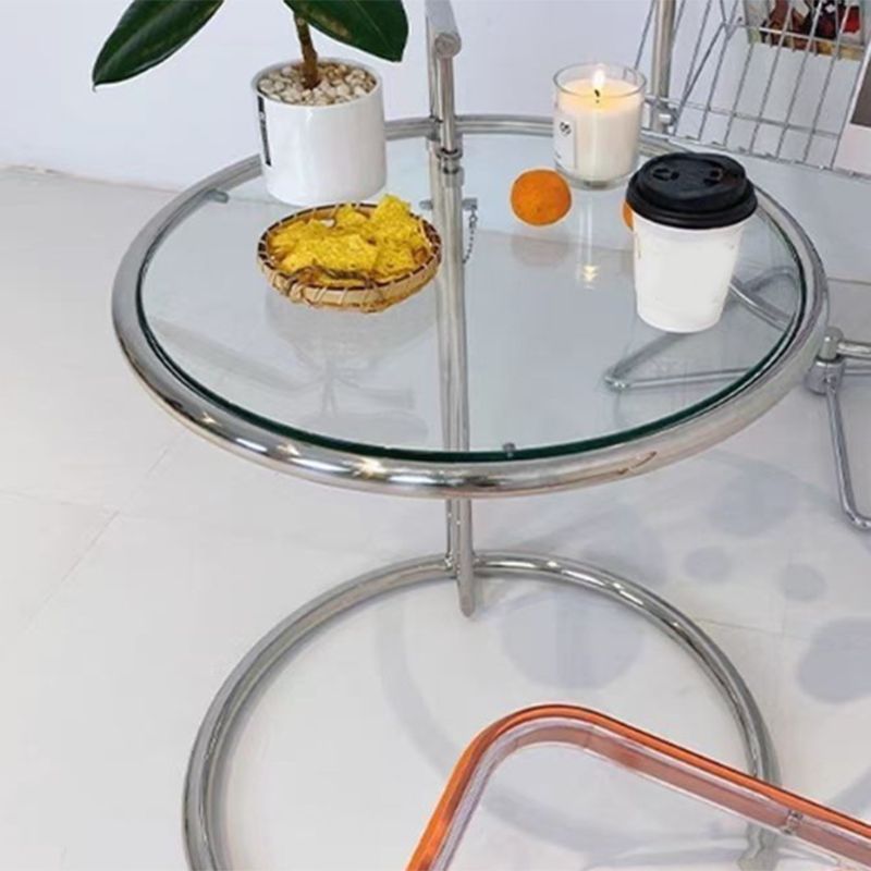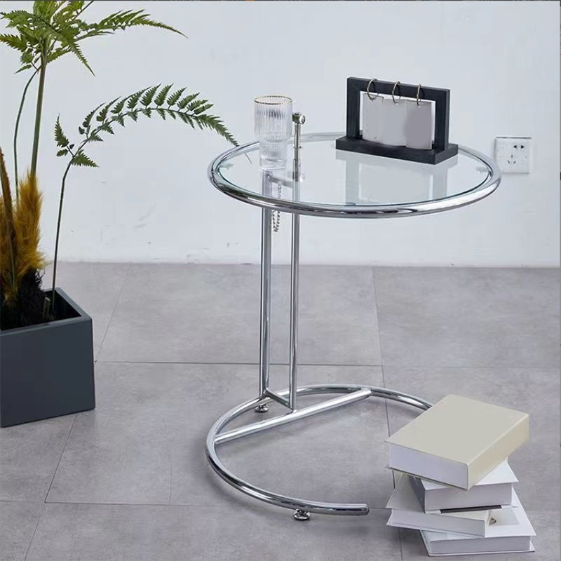 Contemporary Round End Table Glass Living Room Metal Abstract Side Table