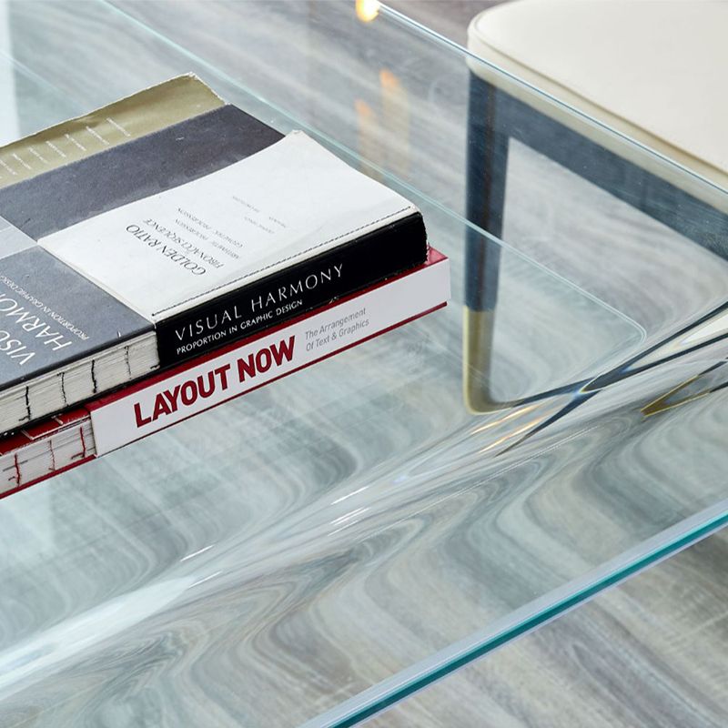 Contemporary Writing Desk Rectangular Glass Office Desk with Storage