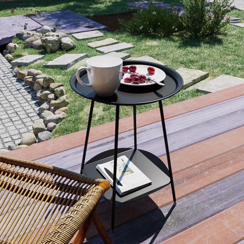 Double Tier Mid-Century Round 4 Legs Metal End Table with Storage