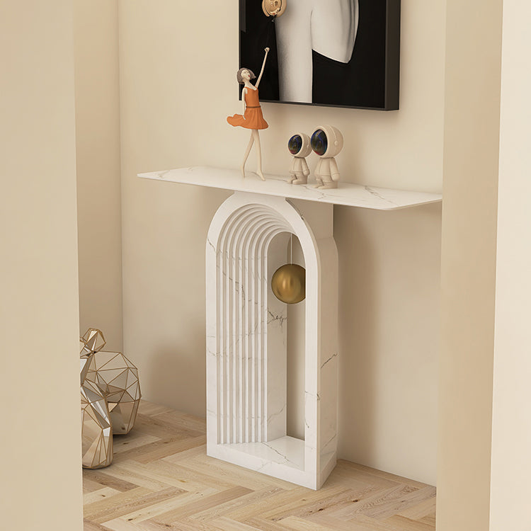 Glam Console Table Rectangle Stone Accent Table , 12 inch Width
