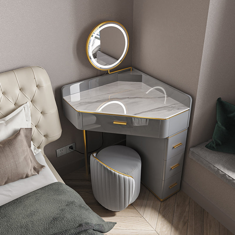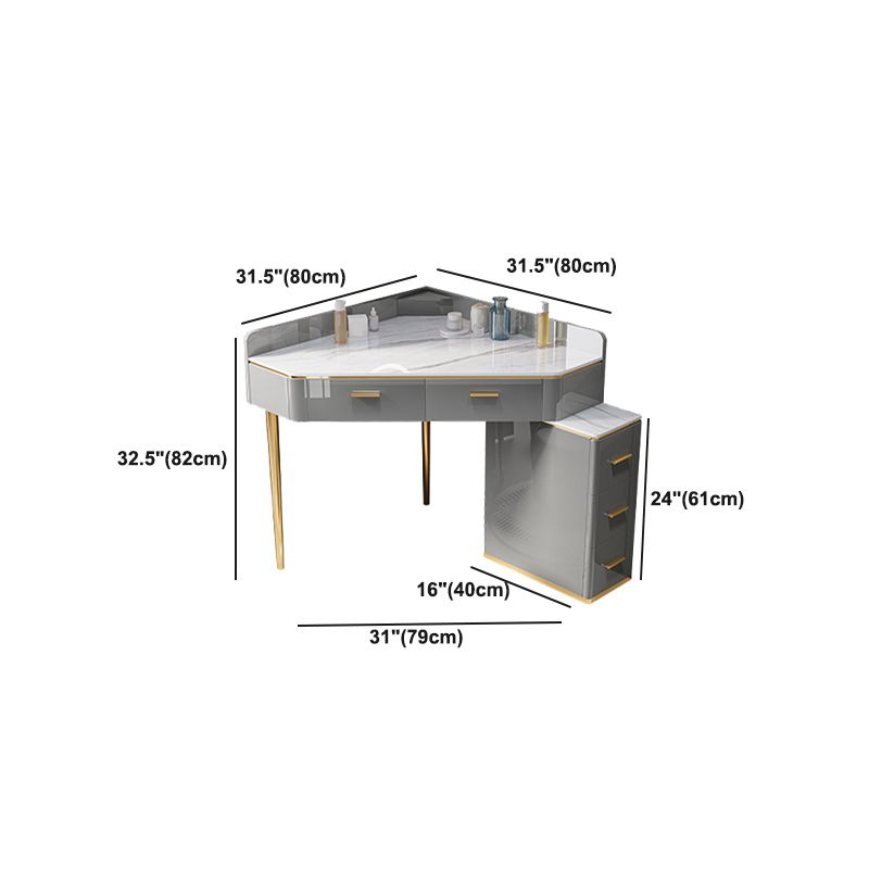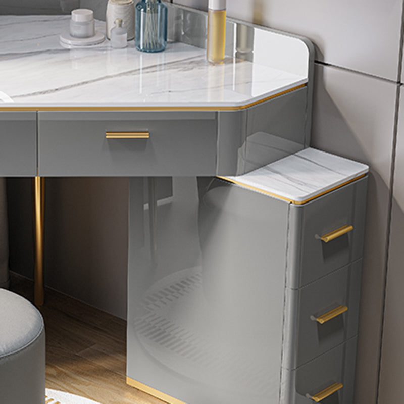 Glam Dressing Table Stool Set with Drawers, Slate Top Makeup Vanity Set
