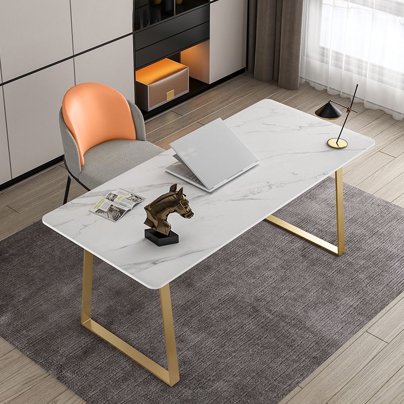 Glam Office Desk Antique Finish Rectangle Computer Desk with Metal Legs