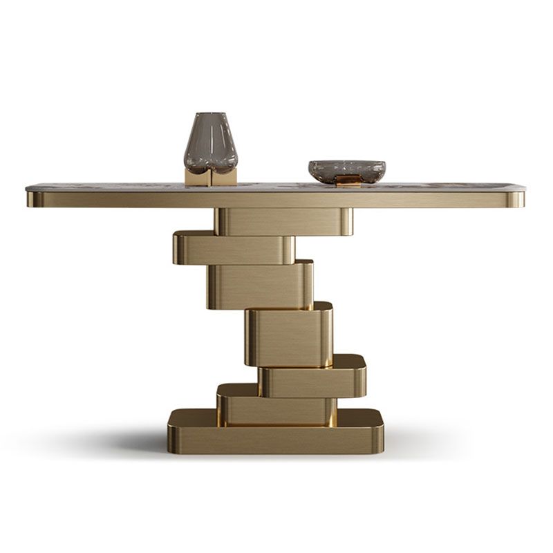 Glam Rectangle Console Table Stone Console Accent Table for Hall