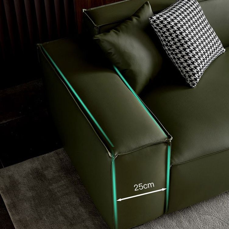 Glam Settee Genuine Leather Living Room Square Arm Cushions Green Standard Sofa