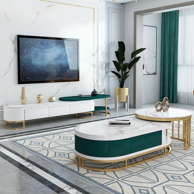 Glam TV Media Stand Open Shelving TV Stand Console with Drawers