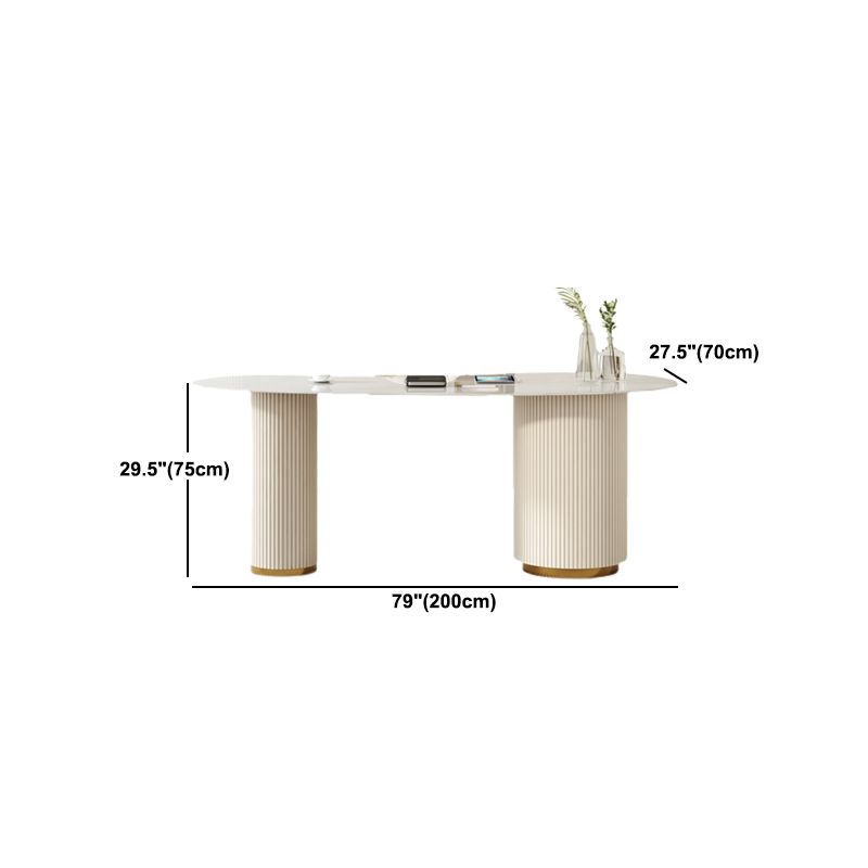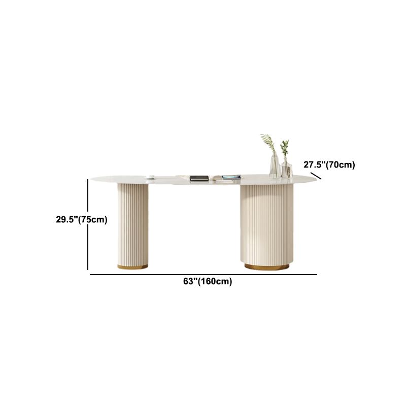 Glam White Office Desk 3-drawer Unconventional Shape Writing Desk for Office
