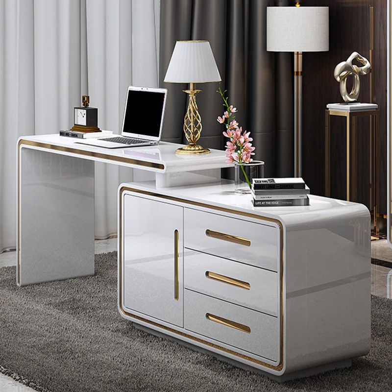Glam Wood Computer Desk White Pedestal Writing Desk for Home