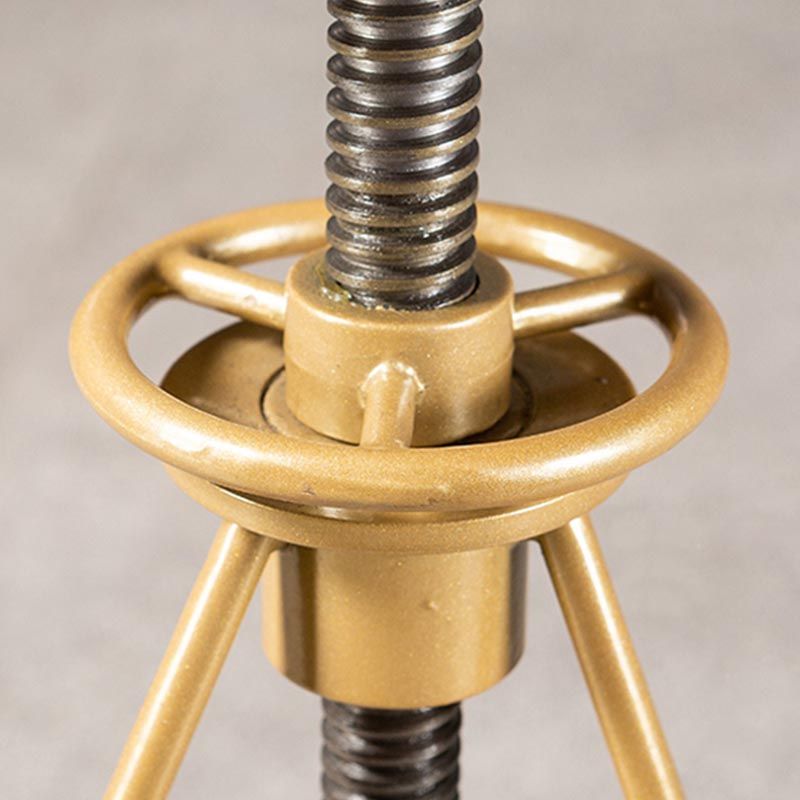 Industrial Adjustable Height Bar Stool Round Solid Wood with Iron Legs