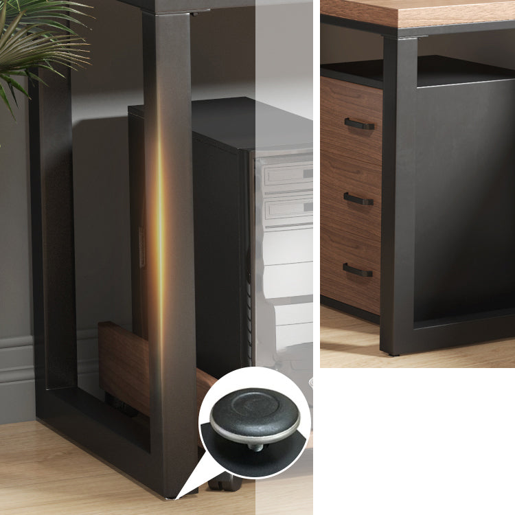 Industrial L-Shape Office Desk Natural Solid Wood Writing Desk for Home