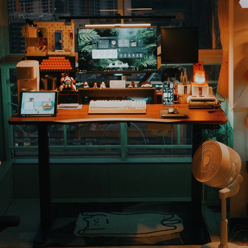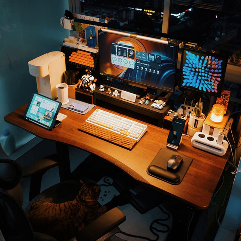 Irregular Shaped Computer Desk Table Wood Writing Desk in Brown