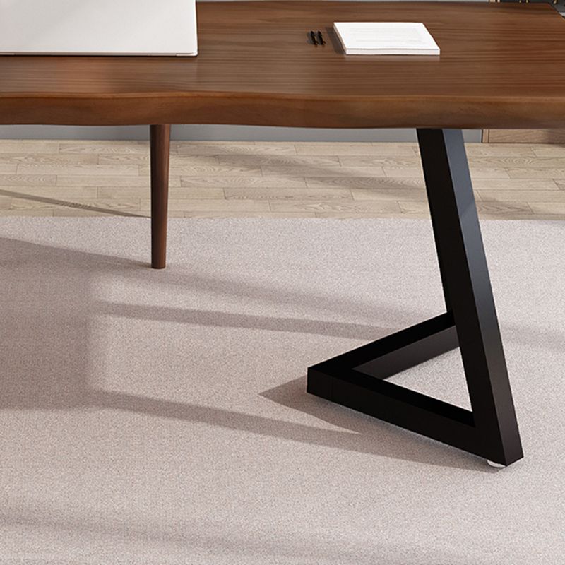Irregular Shaped Working Table Wood Writing Desk in Brown for Home