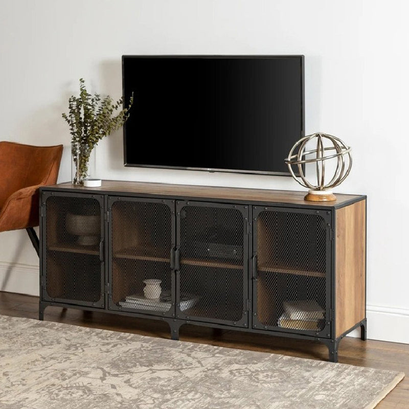 Metal and Wood TV Stand Console Industrial Style Home Enclosed TV Cabinet