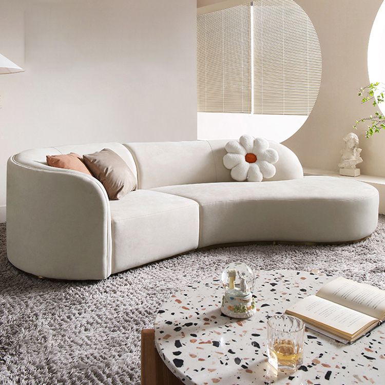 Modern 30.70" H White Wool Tuxedo Arm Curved Sofa for Living Room