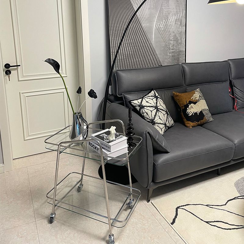 Modern Glass End Slide Table 2-Tier Corner Table with Storage