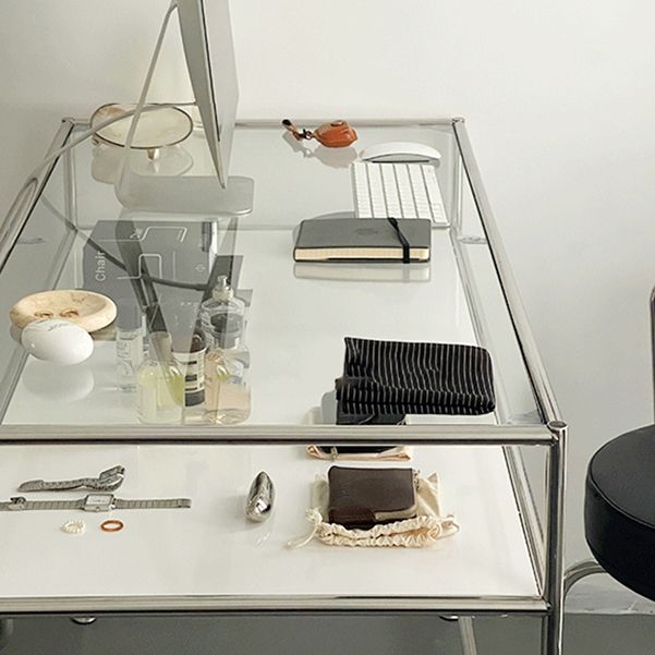 Modern Glass Top Office Desk 23.62"W Rectangular Writing Desk