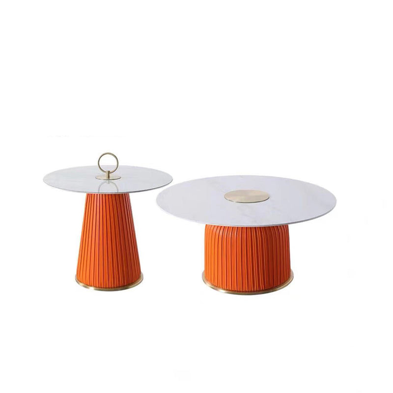 Modern Metal Cocktail Table Round Pedestal Coffee Table - White