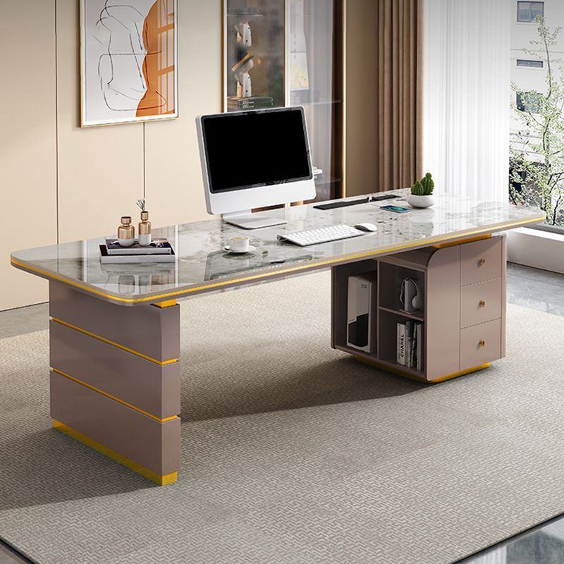 Modern Rectangular Shape Office Desk Stone Task Desk with 3 Drawers for Office