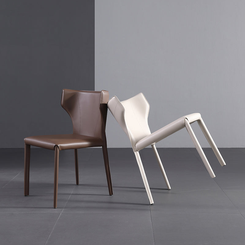 Modern Simple Side Chair Leather Kitchen Dining Chair with Metal Base