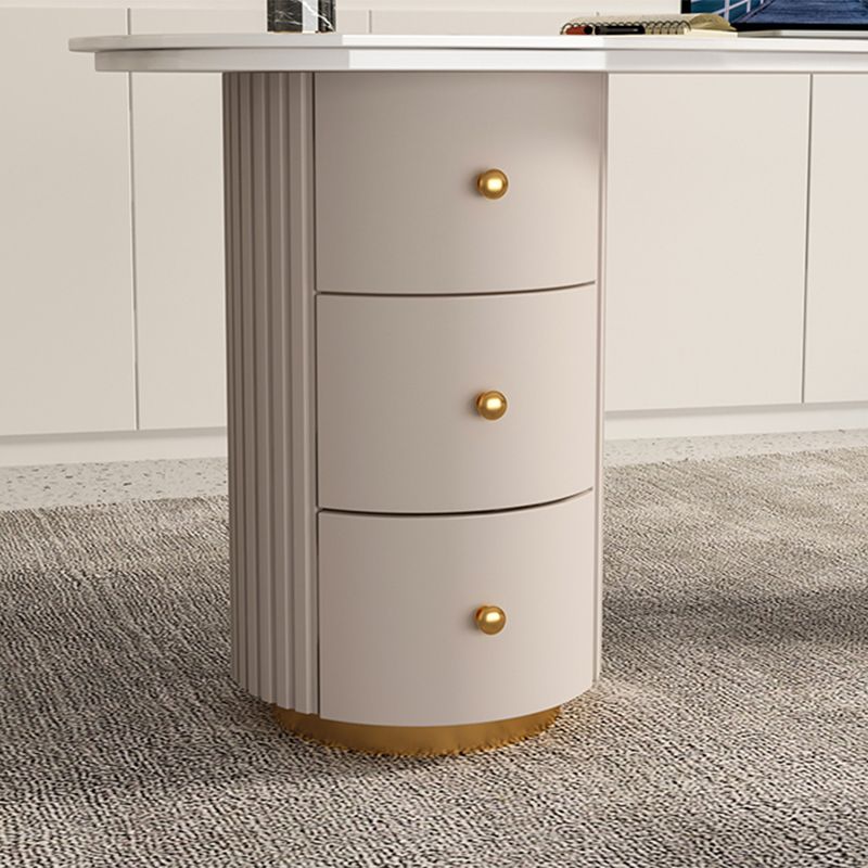 Modern Stone Office Desk Irregular Shape Task Desk with 3-Drawers in White