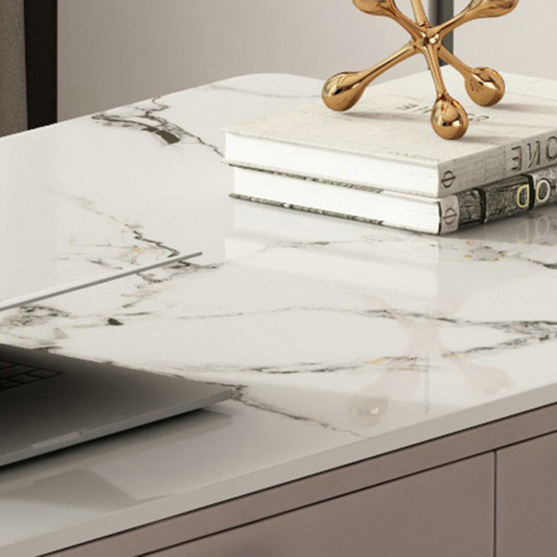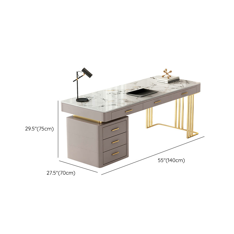 Modern Stone Office Desk Rectangular Shape Task Desk with 6-Drawers in Grey