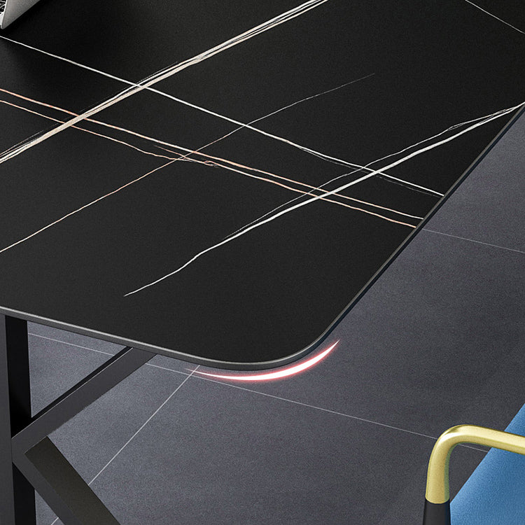 Modern Stone Writing Desk Rectangle 29.53" Tall Office Desk with Iron Legs