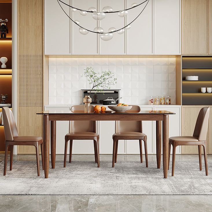 Modern Toughened Glass Top Table Rectangle Home Kitchen Desk with 4 Ash Legs