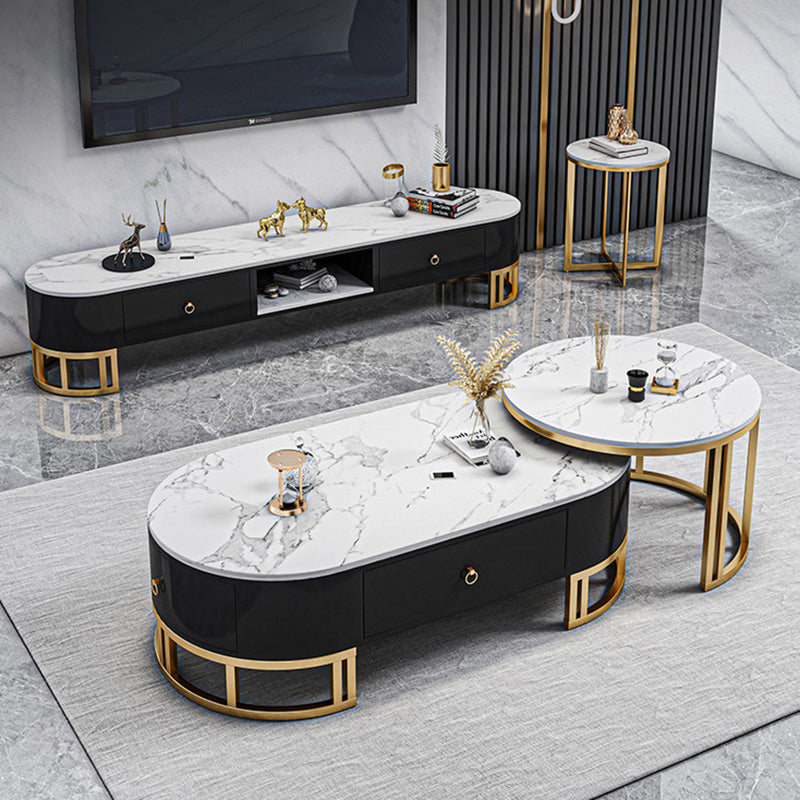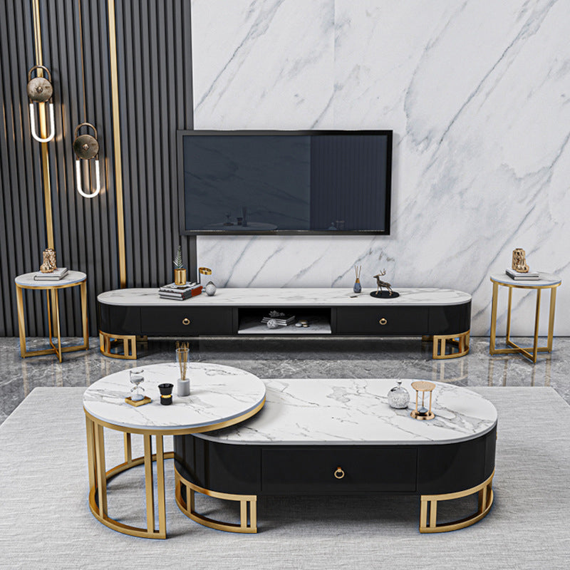 Modern TV Stand Console Open Storage Media Console TV Stand with Drawers